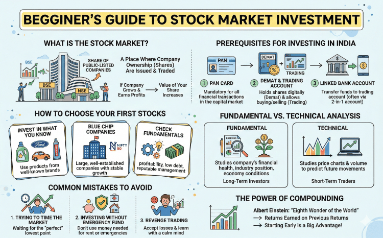 A comprehensive guide for Indian beginners looking to start their journey in the stock market, covering basics, demat accounts, and smart investing tips.