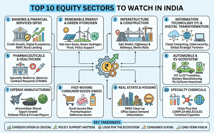 Explore the top 10 high-growth equity sectors in the Indian stock market for 2026. Learn which industries are driving India’s economic engine and where the opportunities lie.